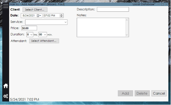 This is the simple layout for adding new appointments, products, and clients.